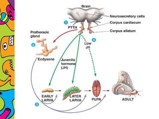Juvenile hormone (JH): สร้างจาก corpus allatum หรือ