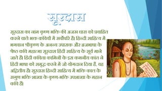 अक्तितीय िै। सूरदास क्तिन्दी साक्तित्य में भक्ति काल के