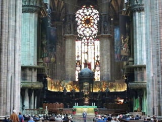 米蘭主教座堂米蘭主教座堂,穹頂高 65.5 公尺,上半部分是哥德式的尖塔,有