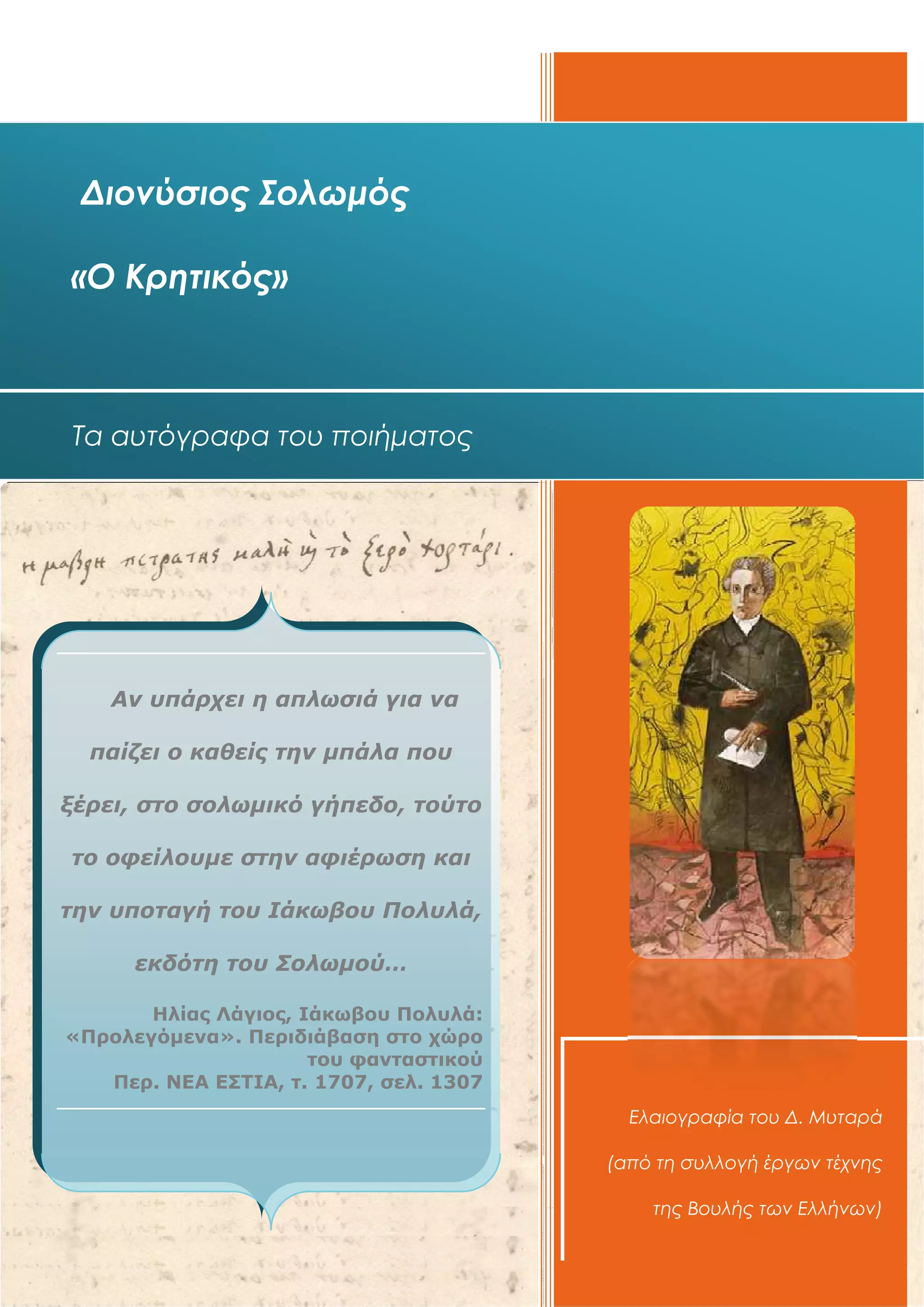 Ο «Κρητικός» του Σολωμού και τα αυτόγραφα του ποιήματος 2