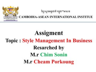 The document discusses style management in business. Style management refers to how a business manages its employees and operations. It is important for management to have good planning and predictions to succeed. Some key aspects of style management include offering bonuses, commissions, and compliments to employees. Management should also focus on updating products, ensuring quality, and competing effectively. Marketing is also an important part of style management, as it allows management to promote their products and services.