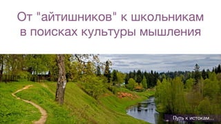 Документ обсуждает важность развития мышления у школьников и их подготовки к современному миру через призму технологий и искусственного интеллекта. Поднимается вопрос о необходимости внимания к детям вместо материальных ценностей и критикуется традиционная школьная система. Основной акцент сделан на обучении и воспитании детей в контексте программистики и самопознания.