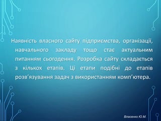 потрібен ще й етап програмування сайту. Власенко Ю.М.