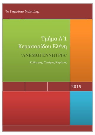 Διάλεξα ως ατομικόμου έργο την ανεμογεννήτρια, γιατί όταν ήμουν στο Νηπιαγωγείο, πήγαμε μια