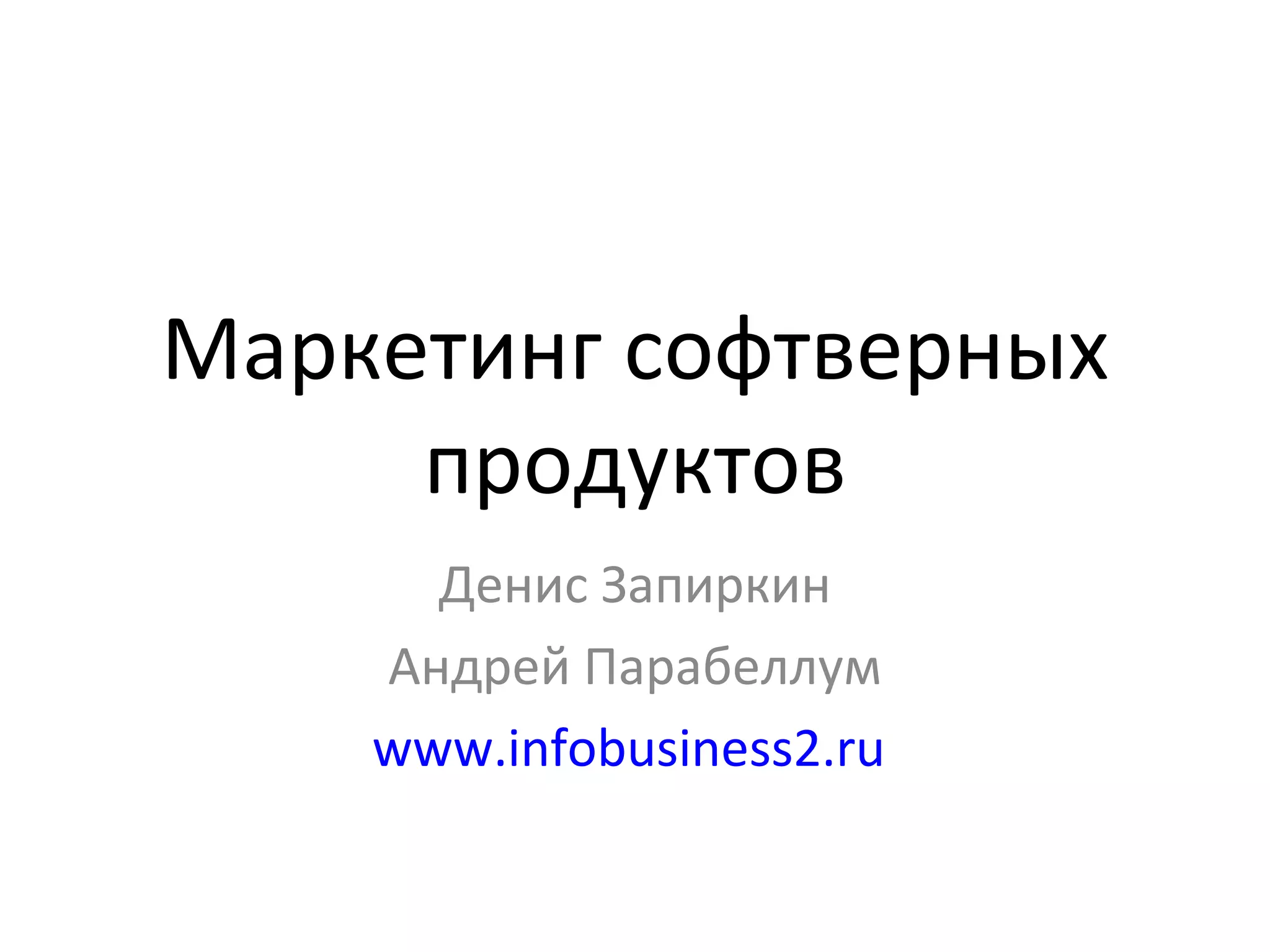 Документ представляет собой руководство по маркетингу софтверных продуктов, подчеркивая важность построения эффективной маркетинговой системы и избежания типичных ошибок. Основное внимание уделяется целевому рынку, анализу конкурентов и разработке стратегий, которые помогут повысить эффективность кампаний. Также рассматриваются подходы к использованию интернета и директ-маркетинга, а также важность PR и участия в выставках.