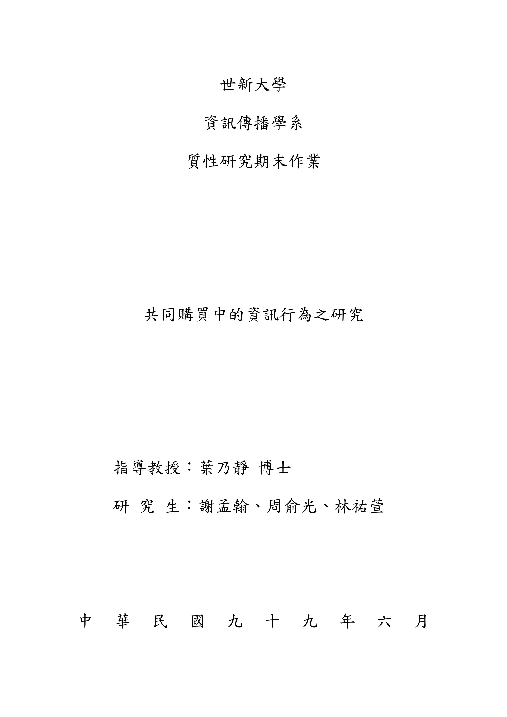 世新資傳 - 共同購買中的資訊行為之研究-台灣主婦聯盟生活消費合作社