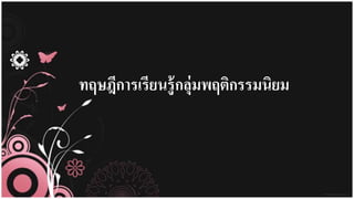 ทฤษฎีการเรียนรู้กลุ่มพฤติกรรมนิยม ทฤษฎีนี้ เน้น การเรียนรู้ที่เกิดขึ้นโดยอาศัย
