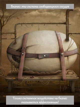 Документ обсуждает совершенствование бизнес-процессов в фармацевтической сфере, подчеркивая важность системного подхода и множества ресурсов для достижения прибыльности. Он представляет различные программы обучения и консалтинга, направленные на развитие маркетинговых стратегий и повышения эффективности работы аптечных сетей. В документе также рассматриваются аспекты взаимодействия с клиентами и создания программ лояльности.