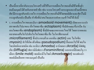 • 1. การเคลื่อนไหวของอะมีบา (amoeboid movement) เกิดจากการแปร