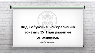 Документ обсуждает разнообразные форматы обучения и развития сотрудников, акцентируя внимание на важности правильного сочетания знаний, умений и навыков (ЗУН) для повышения эффективности. Глеб Смирнов, эксперт в области HR, представляет классификацию 57 форматов обучения с примерами различных тренингов и семинаров. Данные форматы предназначены для повышения мотивации работников и улучшения их профессиональных навыков.