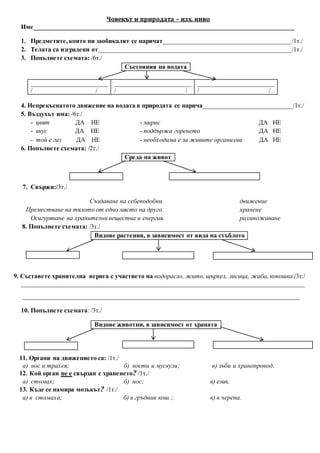 Тест по Човекъти природата