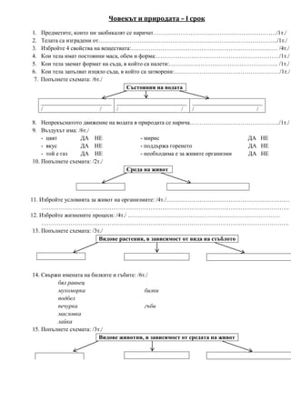 Човекът и природата– І срок