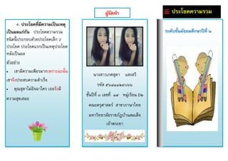 ระดับชั้นมัธยมศึกษาปีที่ ๒ 4. ประโยคที่มีความเป็นเหตุ เป็นผลแก่กัน