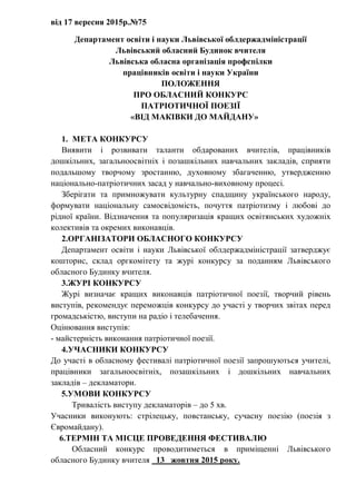 До участі в обласному фестивалі патріотичної поезії запрошуються учителі,