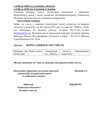 (додаток) в оргкомітет до 08 жовтня 2015 року за адресою: 79000 м. Львів.