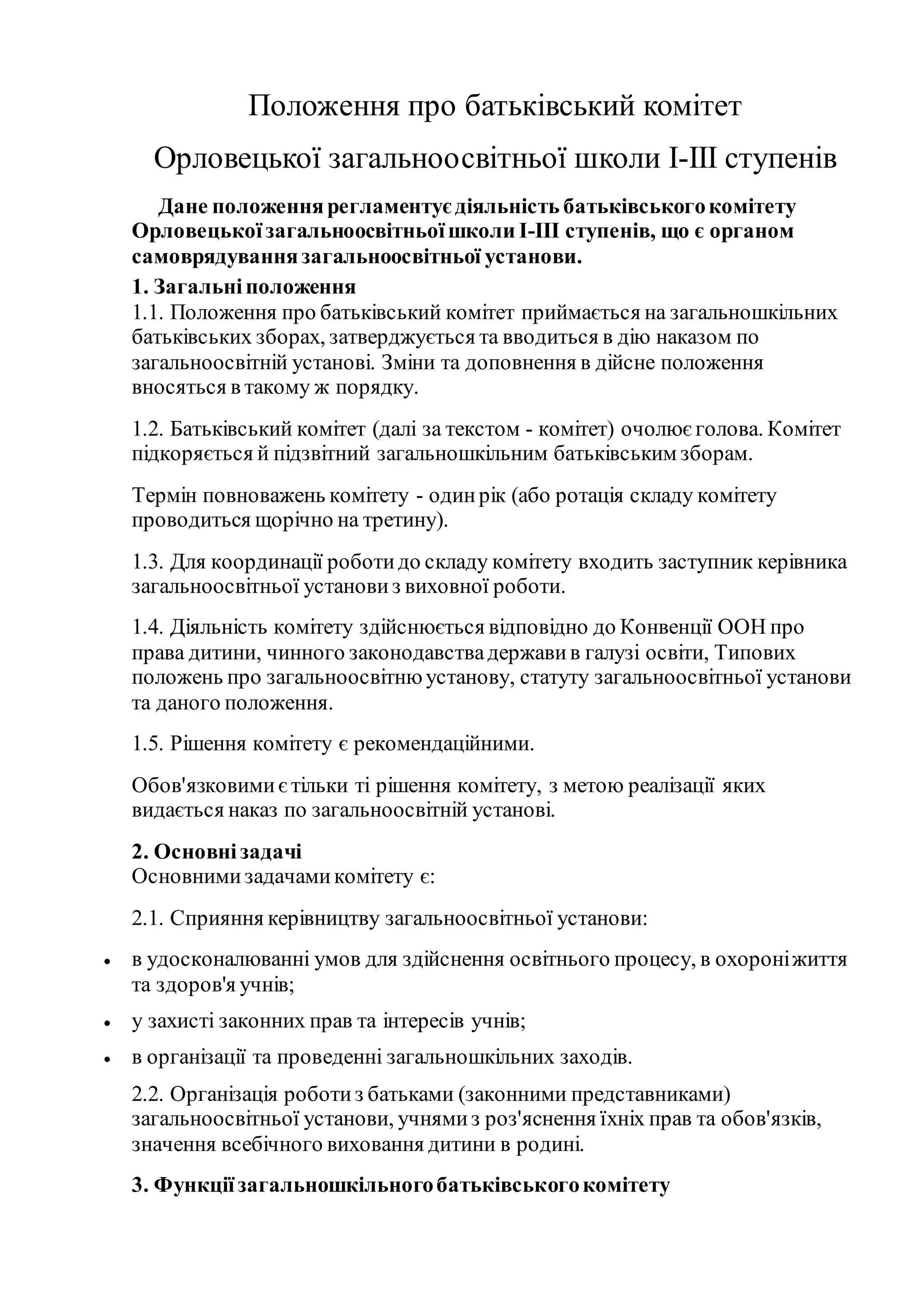 1.1. Положення про батьківський комітет приймається на загальношкільних