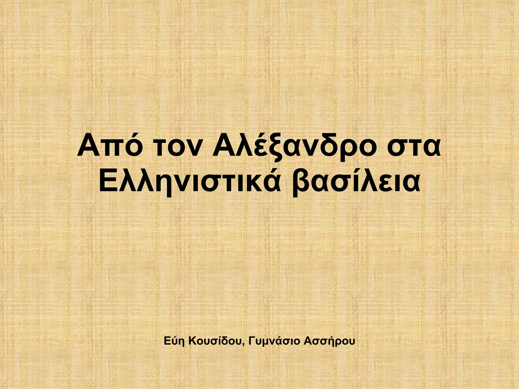 Από τον Αλέξανδροστα Ελληνιστικά βασίλεια Εύη Κουσίδου, Γυμνάσιο Ασσήρου