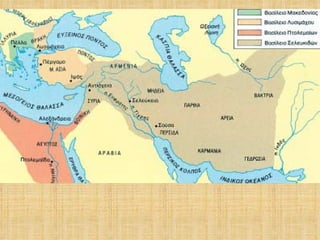 Ελληνιστικά βασίλεια Στημάχη της Ιψού (301 π.Χ.) η αυτοκρατορία του Αλέξανδρου διασπάται οριστικά. Τα κράτη που προκύπτουν είναι: Της Αιγύπτου, από τον Πτολεμαίο Της Συρίας, από το Σέλευκο Της Θράκης και στη συνέχεια της Περγάμου Της Μακεδονίας
