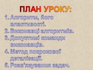 Головний алгоритм – алгоритм, виконання якого веде до досягнення основної мети.