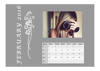 T u e W e d T h u F r i S a t S u n 1 2 3 4 5 6 7 8 9 10 11 12 13 14 15 16 17 18 19 20 21 22 23 24 25 26 27 28 29 FEBRUARY2016 dek-d