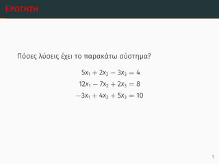 πίνακα έτσι ώστε το σύστημα να (α) έχει μόνον μια λύση και