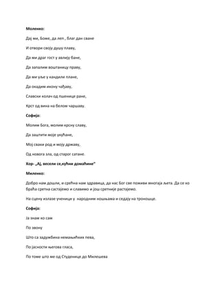 Добро нам дошли, и срећна нам здравица, да нас Бог све поживи многаја љета. Да се ко
