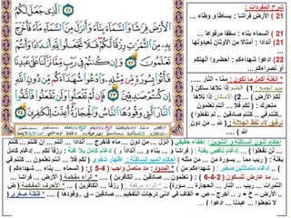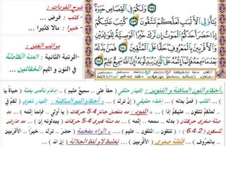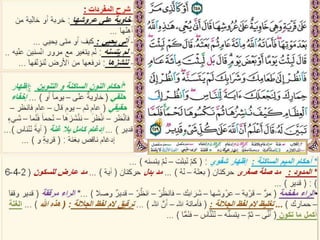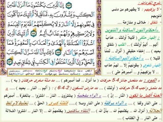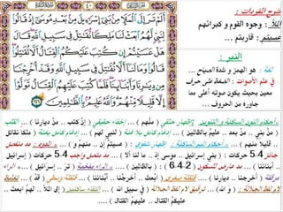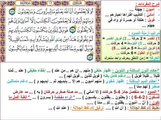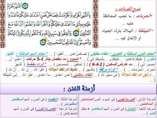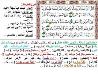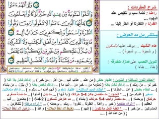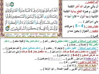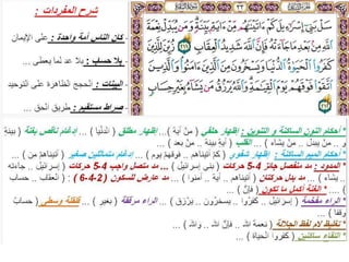 تتناول الوثيقة خطة عمل لحفظ القرآن الكريم وتحديد آليات عرض مصحوبة بالتجويد وأحكامه. كما تشمل الوثيقة وسائل لتبسيط عملية الحفظ، مع التأكيد على أهمية دقة التدقيق والتأكد من صحة الأحكام المشار إليها. وتحتوي أيضًا على دعوة للتواصل في حال وجود أي أخطاء.