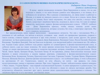Документ описывает 25-летнюю историю первого физико-математического класса лицея, подчеркивая достижения и воспоминания первых выпускников, их связь и дружбу, сложившуюся во время учебы. В тексте приводятся имена учеников и учителей, акцентируется внимание на successes alumni в учёбе и карьере, а также на важности лицейского братства. Кроме того, документ содержит личные размышления автора об обучении и восприятии уроков математики и физики.