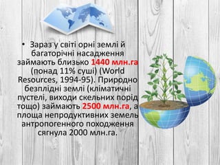 • Зараз усвіті орні землі й
