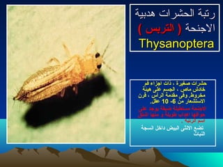 تتناول الوثيقة أنواع الآفات الزراعية مثل التربس والذبابة البيضاء، وتوضح تأثيرها على المحاصيل مثل القطن واللوز. تتضمن المعلومات تفاصيل عن دورة حياة هذه الحشرات وأعراض الإصابة بها، بالإضافة إلى كيفية تأثيرها على صحة النباتات وإنتاجية المحصول. تشير الوثيقة أيضًا إلى أهمية مراقبة الآفات وإدارتها للحفاظ على الإنتاج الزراعي.