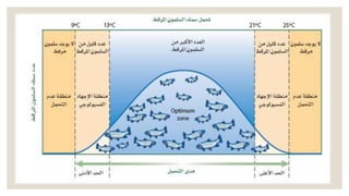 تتناول الوثيقة مفهوم المجتمعات الحيوية وتأثير العوامل الحيوية واللاحيوية على توزيع المخلوقات الحية. تشرح أيضًا فنون التعاقب البيئي بمراحله المختلفة، مثل التعاقب الأولي والثانوي، وكيف يتم التغيير في المجتمعات البيئية نتيجة تغيرات معينة. بالإضافة إلى ذلك، تبرز أهمية العوامل البيئية وتأثيرها على القدرة على التحمل للمخلوقات.