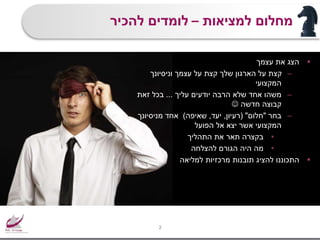 במהלך היום ענינו על שאלות מרכזיות שמעסיקות את כולנו: כיצד ניתן להפוך את תכניות העבודה למציאות? ואלו פעולות ניתן לנקוט בשביל להבטיח הצלחה? וכיצד "למכור" את הערכים המוספים של הפעילויות שלנו (ואת עצמנו על הדרך) כך שגם ההנהלה תבין שזה