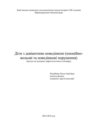 антидисциплінарних, антисоціальних, делінквентних, аутоагрессивних;