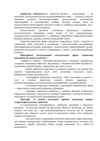 профілактичної роботи. Девіантна поведінка є змінною реакцією підлітка (що