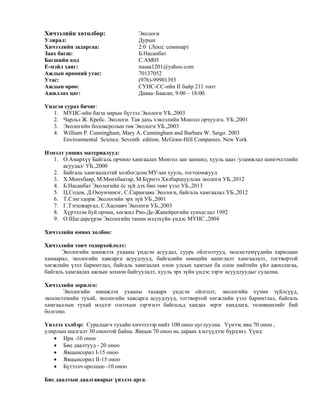 Similar to экологи хичээлийн хөтөлбөр