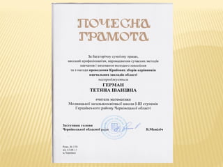 Також виступила на засіданнях методичного об′єднання з рефератами