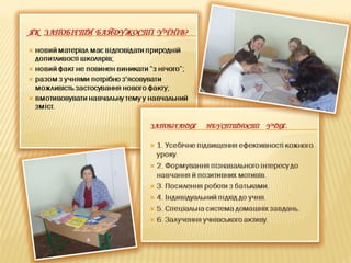 • Створення атмосфери зацікавленості кожного учня в роботі
