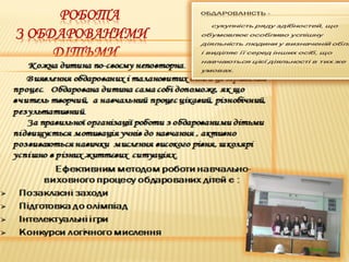 Тема над якоюпрацюю : « Виховувати здібного учня