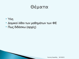 Το μάθημαοργανώνεται σε δραστηριότητες