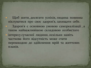 піклуватися про своє здоров’я, захищати себе.