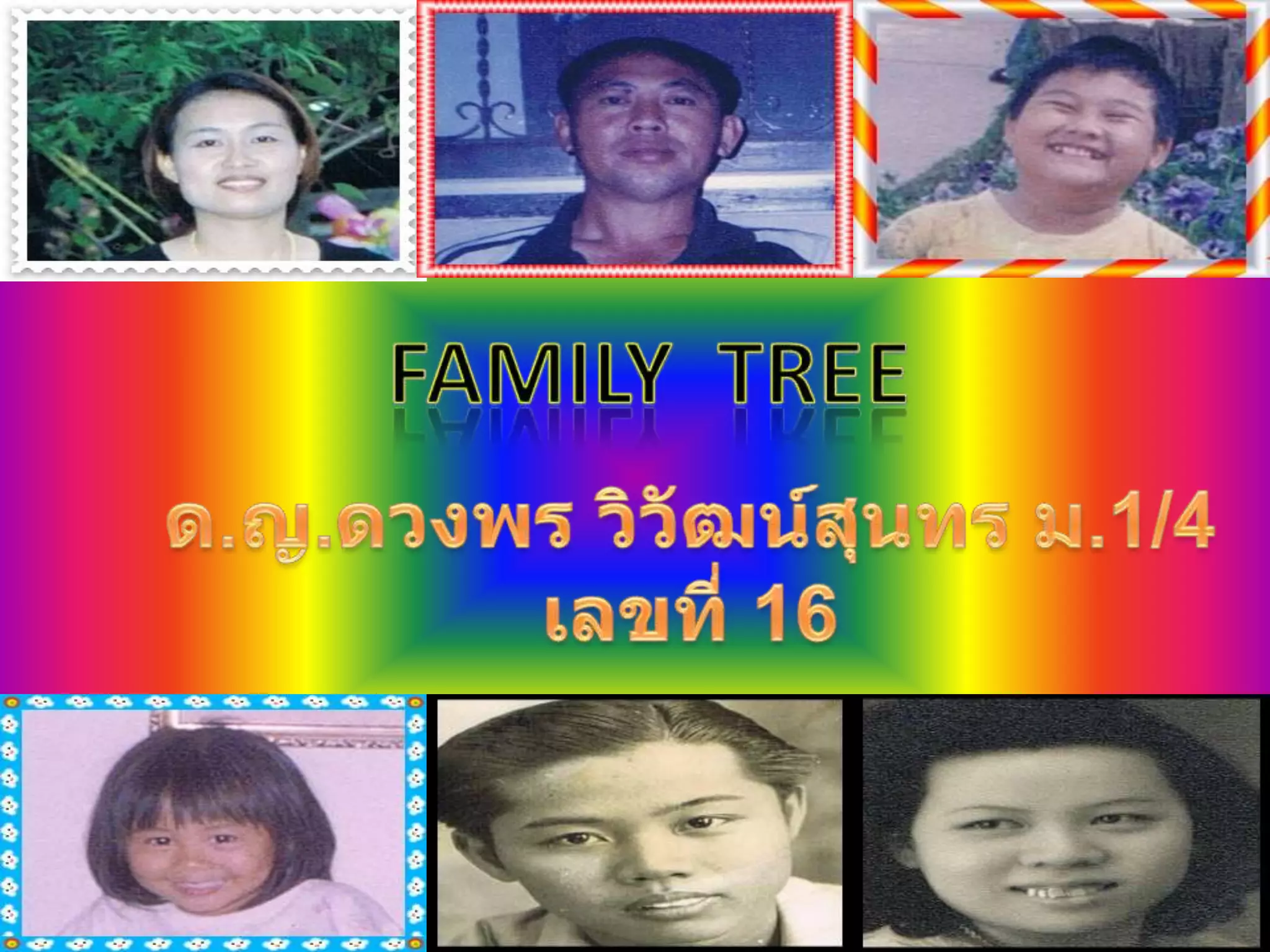 หน้าตา - พ่อลักษณะจมูก- พ่อผมตรง - พ่อลักษณะปาก - พ่อไม่มีติ่งหู - แม่สีผมดำน้ำตาล - แม่สีผิว - แม่นิ้วมือ - แม่ลักษณะการเดิน - ปู่ตาตี่ - ปู่ - 5.