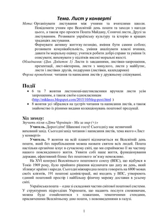 виховний захід. Сьогоднізахід читання і написання листів, тема якого «Лист