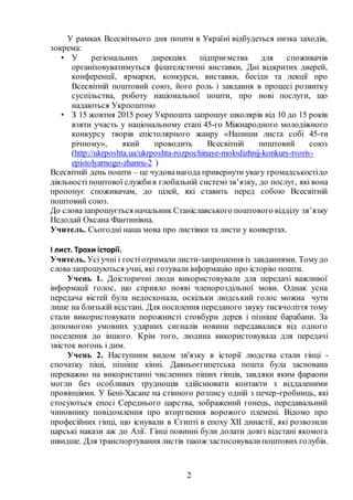 слова запрошуються учні, які готували інформацію про історію пошти.