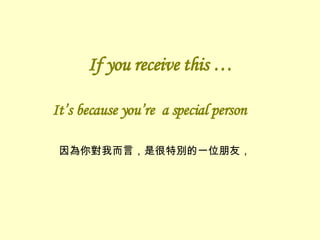 this … It’s because you’re a special person 因為你對我而言,是很特別的一位朋友,