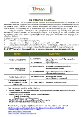 Επίσης οι απόφοιτοι μαθητές των ΕΠΑΛ μπορούν να συνεχίσουν τις σπουδές τους, μετά από