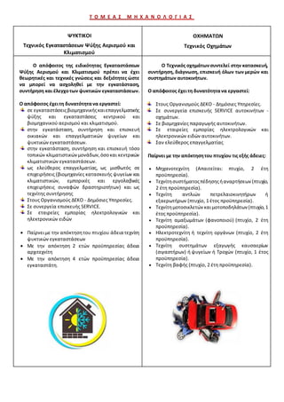 ΤΟΜΕΑΣ ΜΗΧΑΝΟΛΟΓΙΑΣ Τεχνικός ΜηχανικόςΘερμικών ΕγκαταστάσεωνκαιΜηχανικός Τεχνολογίας