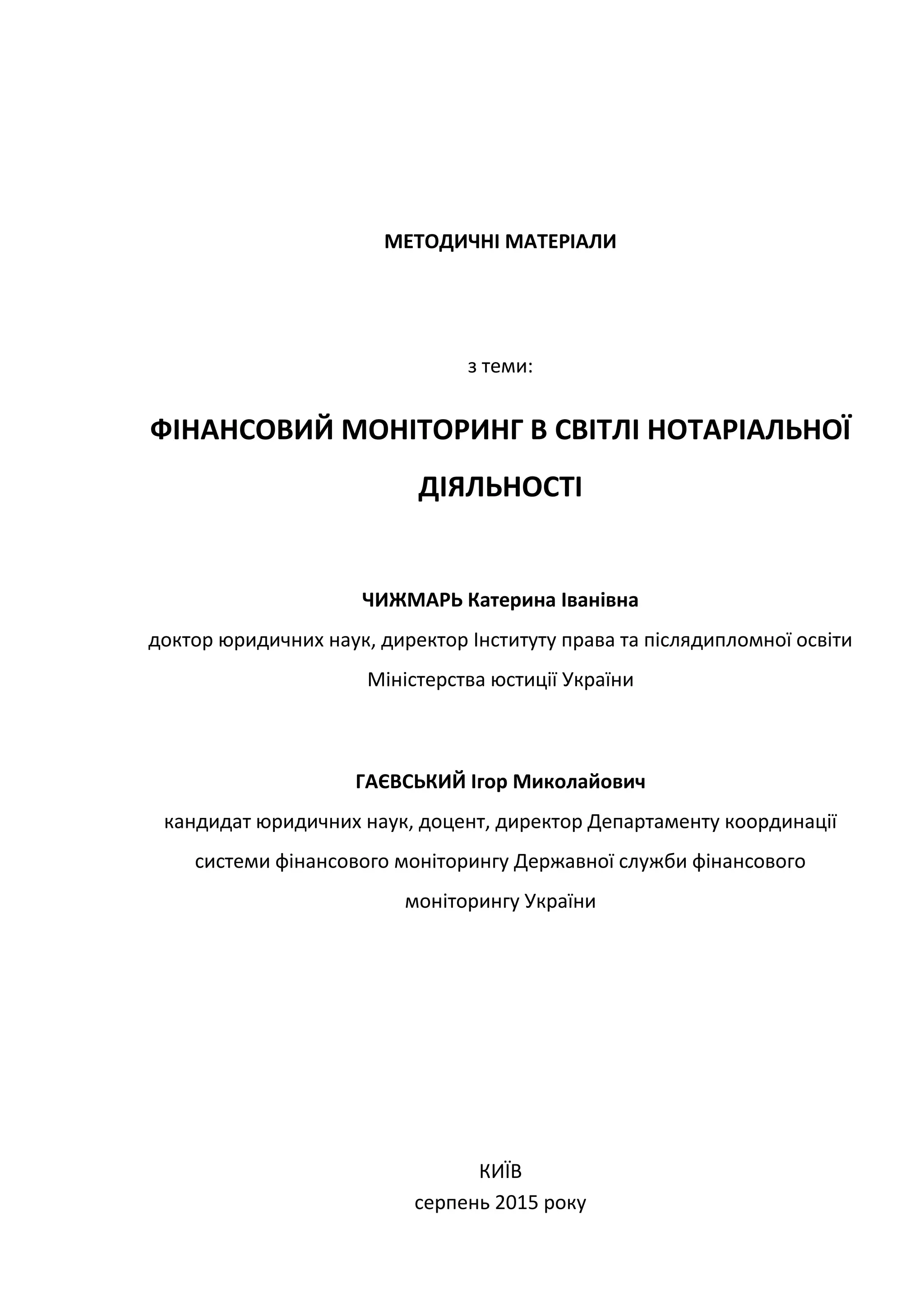 ФІНАНСОВИЙМОНІТОРИНГ В СВІТЛІ НОТАРІАЛЬНОЇ