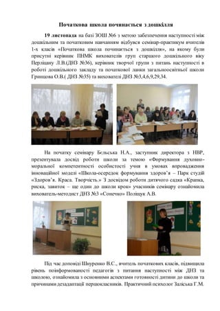 19 листопада на базі ЗОШ №6 з метою забезпечення наступності між