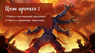 Документ описывает проект по повышению эффективности розничных продавцов через мотивацию и онлайн-обучение. Основные инструменты включают использование POS-системы и мобильного приложения для информирования и соревнования между продавцами, а также игровые механики для обучения. Проект ориентирован на создание рейтинга вовлеченности сотрудников и индивидуальных планов обучения для повышения продаж.