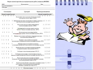 Документ посвящен созданию условий для выявления и развития одаренных детей в рамках федеральной целевой программы «одаренные дети». Он обсуждает важность просветительской работы среди учителей и родителей, а также описывает принципы индивидуализированного обучения и методы диагностики одаренности. В документе также приведены примеры методик оценки, индивидуальных образовательных маршрутов и исследовательской деятельности учащихся.